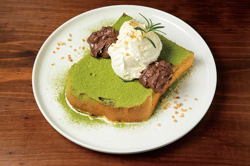 ▲和歌山抹茶紅豆法式吐司220元/來自日式麵包店的厚片吐司,先於表面炙燒增加脆皮口感、灑上抹茶粉,再放上北海道生乳鮮奶油加自製紅豆泥,創造多層次口感。![]()
