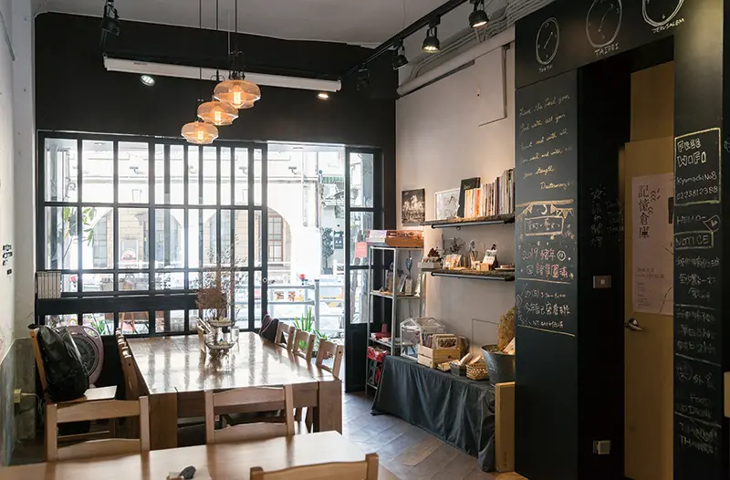 熱愛日式建築與古蹟文化的店主人,2年半前人生意外轉彎,因緣際會與撫臺街洋樓對面、一幢1930年代的老房子相遇,便辭掉工作進駐開設咖啡館,提供咖啡茶飲、鹹甜點等輕食。店內特別將前、後門敞開,納入北門郵局、撫臺街洋樓等古蹟風景、創造通透視野,絕妙空間利用使其獲得老屋新生獎。而為了吸引年輕人造訪,店內不定期舉辦活動講座,使其成為老城區的交流共享空間。