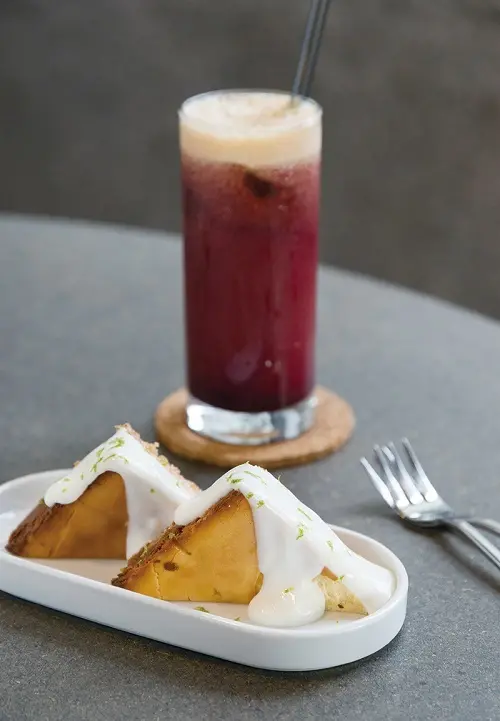 ▲鬧山丘120元(前)/ 檸檬起司蛋糕淋上優格醬,酸甜滋味是店內的人氣甜點。慢磨萃取蔬果汁150~170元(後)/慢磨萃取保留蔬果的天然原味,依季節不同也會調整蔬果配方。