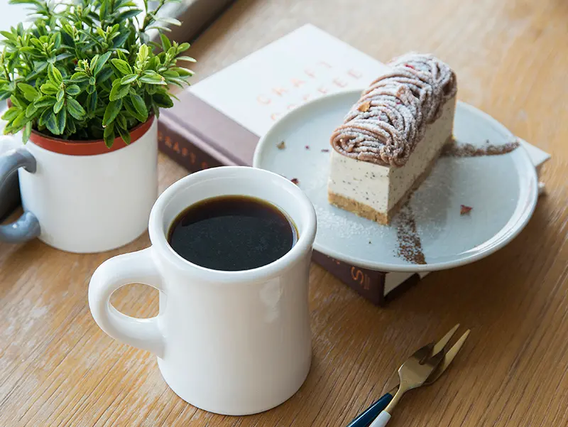 ▲手沖 價格店洽(前)/精選北歐豆商咖啡豆,風味乾淨明亮。栗子伯爵生乳酪150元(後)/店內自製甜點,口感滑順綿密,每日隨機供應數款口味,另會隨季節食材開發限定風味,如草莓抹茶生乳酪。