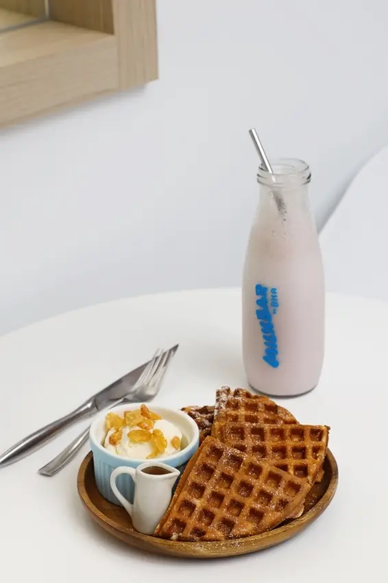 以電影《發條橘子》中的Korova Milk Bar為啟發,販售多樣牛奶、飲品與輕食,融入北歐溫暖木質系設計風格,鏤空的天花板牆面看似違和的工業風,卻在燈光與色調的投射下,呈現出暖心的氛圍。