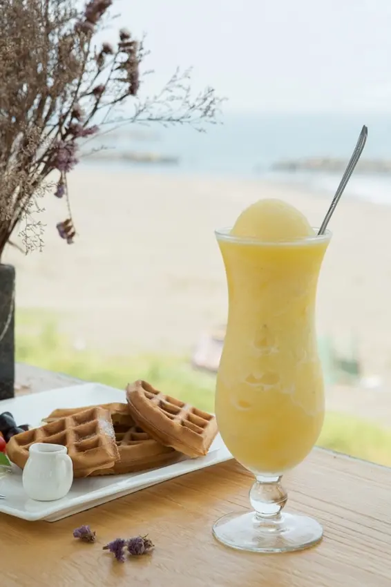 原址前身為軍事哨所,荒廢已久後由灆咖啡進駐,成為熱門景觀咖啡館。店內空間清爽明亮,如詩如畫的窗外景色讓人驚嘆,登上2樓觀景台,眼前遼闊的太平洋海景盡收眼底,與龜山島相遙望的景色也相當迷人。除了提供精品手沖咖啡,還有多款輕食、飲品,與海為鄰,大坑自行車道、烏石港等自然景點就在店家旁邊喔!