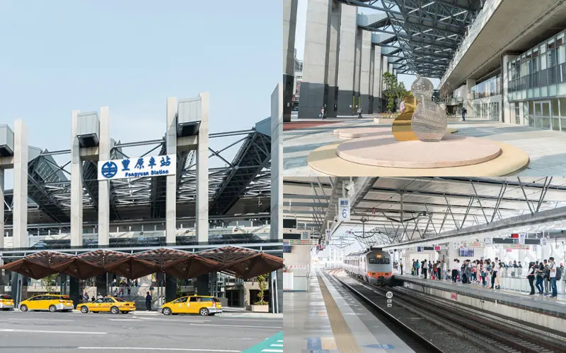 舊稱為葫蘆墩的豐原,將其在地特色巧妙融入豐原車站,包含白米、葫蘆等造型意象皆轉換成立體閃亮的裝置藝術;而極具氣勢、現代感十足的車站空間,也成為觀光旅遊的亮眼門面,可由此前往廟東小吃街、糕餅街。