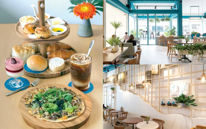 日青咖啡主要結合店主人大女兒拿手的咖啡、甜點與二女兒的烘焙專長,提供將近95%自製的安心健康餐點,傳遞手作溫度。麵包拼盤、牛肉起司薄餅、肉桂捲與千層蛋糕是店內必吃推薦,甜點搭配森雨制陶點心盤更添美味;而咖啡品項如小太陽卡布奇諾、阿芙佳朵也是店家特色,在不限時的空間裡,每個人都能在此慢享咖啡時光。