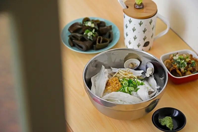 粥潤花主打真材實料、不添加加工食品的原味,口感偏似南部鹹粥,每一口皆能嚐到飯粒口感,美味中又不失健康。