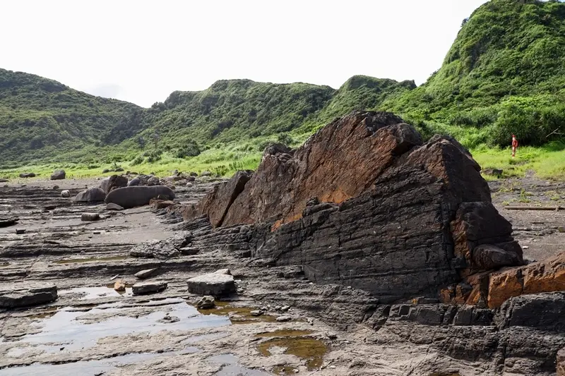 目前全台最大的火龍岩,因地底爆發未噴出表面,加上地殼擠壓以及海岸侵蝕而成,外形宛如潛入海中的龍露出的背脊,而火山爆發直接從石頭中間滲透,將岩層切割得非常完整。