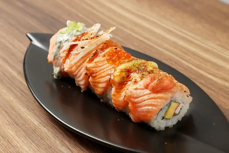 ▲心高采烈鮭魚捲180元/將鮭魚作捲為基底,融入明太子、照燒、焦糖、日式味噌、塔塔醬,打造出鮭魚的5種人格。