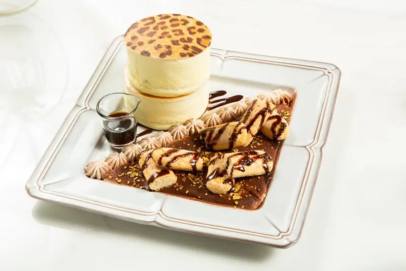 ▲英式豹紋厚鬆餅(提拉米蘇)260元/以日本進口鑽石粉與上白糖煎烤特製2層將近11公分的超厚鬆餅,除了創造紮實口感與飽足感,另以英國進口可可紙創造豹紋的視覺效果也令人驚喜。店內一共推出4種風味,除了提拉米蘇,另有紫芋、綜合水果與抹茶等選擇。