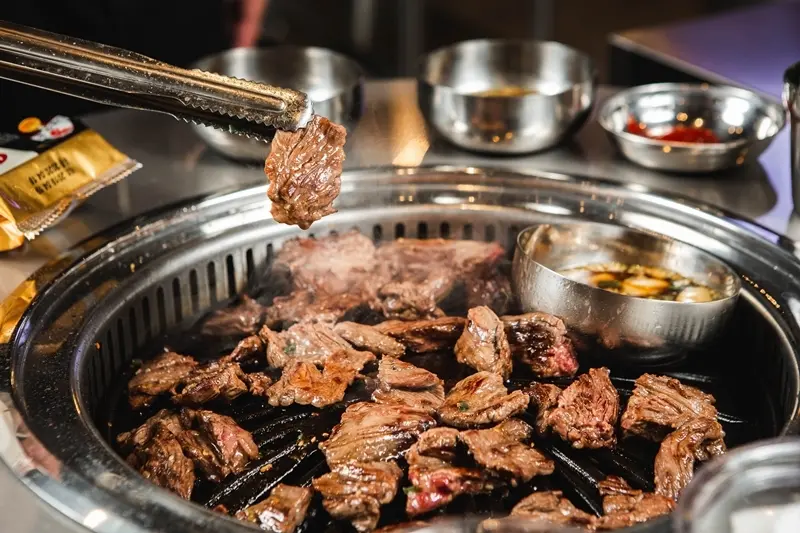 如今,海外首店坐落繁華信義區,搖身成為都會男女隨時可輕鬆吃烤肉的中繼站,店內從鐵桶烤肉、使用肉品澳洲牛肝連、到蒜頭烤肉醬皆原汁原味重現本店傳統;唯獨為方便客人搭配享用,台北店另供應韓式泡菜、黃金海帶、醃蘿蔔等加價購小菜,低消則為1人份6oz的肉品。