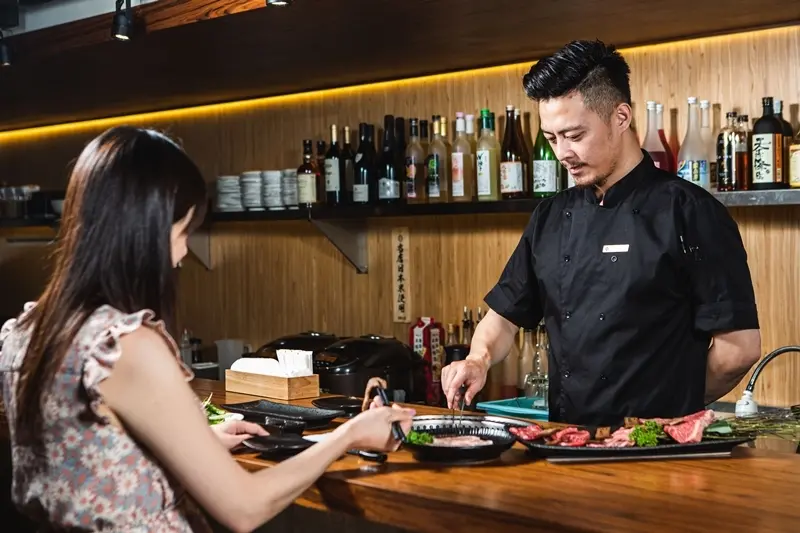 店內燒肉主要採貼心的桌邊服務,店內更有2名帥氣男師傅,開店之後便爆紅,意外吸引許多客人指定慕名而來!