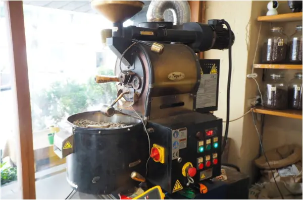 看到店員還會去烘培機前的整袋咖啡豆內做挑豆動作,主要挑出一些不好、缺角或劣質的咖啡豆都一一屏除,看的到店家對於咖啡品質的用心。〈全文介紹及店家資訊〉