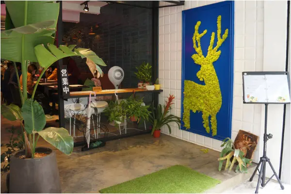 花草植栽及木框門面的優雅端景,從室內門窗邊由內外望視覺美感,空間融合著簡約復古與低調風華。〈全文介紹及店家資訊〉