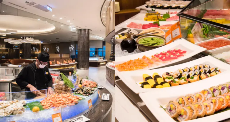 都會優雅的裝潢風格,藉由質樸木紋與大理石材的對話,引領您進入異國料理繽紛美食的境地!多款異國特色自助佳餚、健康蔬食、海鮮吧、開放式廚房、精緻西點及Häagen-Dazs冰淇淋等,精緻豐盛,頂級美味,是優雅時尚空間與佳餚美饌的完美結合!