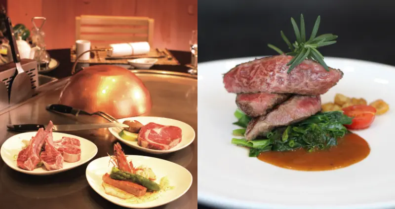 主廚嚴選頂級牛排及生鮮食材,以精湛熟練的廚藝,讓賓客盡情享受在鐵板上翻滾的美味,每道佳餚均屬上乘。典雅現代的用餐氣氛,精心挑選各款名酒,讓您在光影搖曳中盡情享受優雅、浪漫的用餐情調。