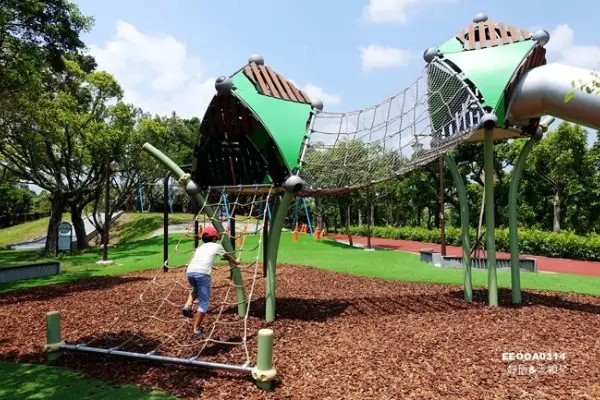 公園裡除了森林冒險玩遊戲場,還有大草皮、籃球場、網球場、慢跑道及生態池等,很適合親子同遊全家同樂……〈全文介紹及店家資訊〉