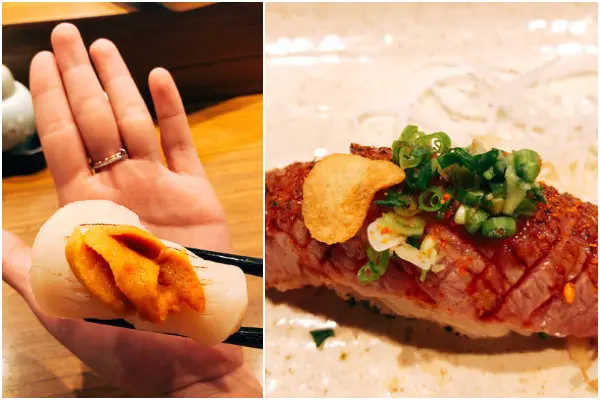 頂級組合握壽司干貝的尺寸大概是3個10元銅板那麼大,海膽料理長則是不手軟的給了滿滿一大匙,干貝也是稍微炙燒過提升香氣……〈全文介紹及店家資訊〉