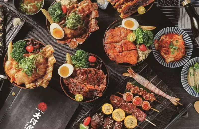 大河屋有多款丼飯、串燒料理選擇,嚴選三道熱門丼飯推薦,「築地星鰻丼」(圖下排左)特選肉質細緻軟嫩的星鰻,經大火炙燒,讓星鰻的油脂與香氣完美釋放,讓人一秒被圈粉;「紐約客牛排丼」(圖下排中)取自牛前的腰脊肉,含少些脂肪,帶有嚼勁,燒烤時肉汁被完美鎖住;「塩蔥燒牛舌丼」(圖下排右)展現師傅功力,牛舌燒烤熟成恰到好處,口感吃來彈牙,再加上炙燒前特別涮上的獨門燒肉醬汁,讓肉質甜味更加提升,那滋味說有多迷人就有多迷人!最後,一定要再配上相佐在旁的溏心蛋,Q彈有勁,完全畫龍點睛!![]()