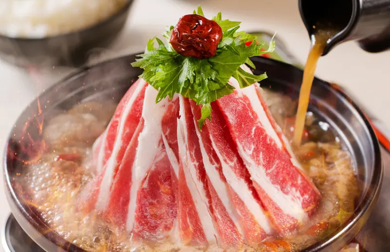以多種香料熬製的壽喜燒醬汁,與高麗菜鮮甜完美搭配,淬釀清香,暖心開胃,將薄厚適中富有口感的梅花牛,擺盤成小肉山,容易手機先食拍不停。另一款則是花重本使用中藥包熬煮的藥膳燒鍋,香醇濃郁,香氣繚繞,讓人暖胃驅寒,不少進店客人直接詢問加點。此兩款暖胃湯頭皆有梅花牛、梅花豬供消費者選擇。![]()