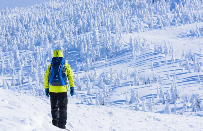 想看樹冰不一定要到藏王!秋田森吉山的阿仁滑雪場讓您可以換上雪鞋,拿起雪杖走在樹冰間,來場近距離接觸,除樹冰奇景外,覆上白雪的山毛櫸也清麗地令人心醉,幸運的話還能遇見滑雪場的秋田犬喔!看完樹冰後直接在滑雪場玩雪也十分過癮!
