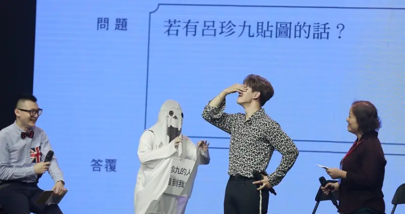 首次來台灣辦粉絲見面會,呂珍九對於粉絲提問相當有耐心,粉絲提問也相當多元,除了對於劇本角色挑選準則、認為自己的優點等基本題,還有煮泡麵先放麵或調味料、牙刷先沾水或擠牙膏等生活題,連穿衣服、洗澡順序也都有人提問,甚至還有人提出「想看你喝水」,呂珍九全都來者不拒,一一替粉絲解答。