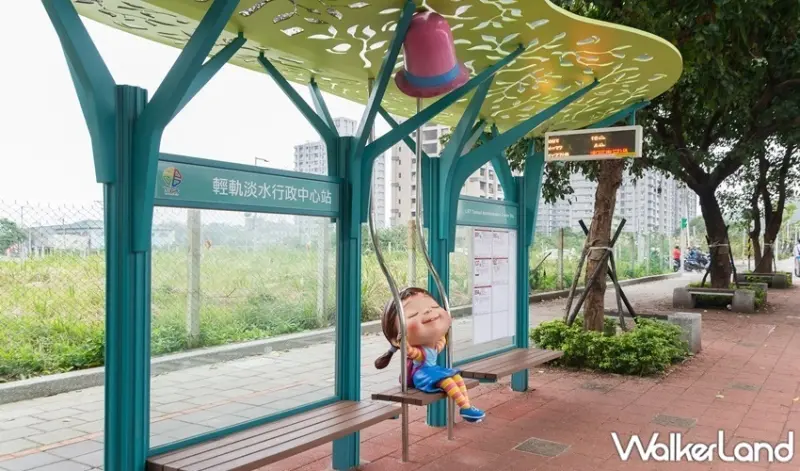 來到淡海輕軌,除了每一站月台上都有必拍的幾米裝置,沿途還有幾米可愛候車亭,超療癒景象讓人直呼超可愛,一定要搶拍。