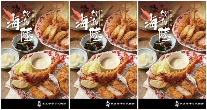 酥炸軟殼蝦搭配廣島牡蠣、里肌豬排、腰內豬排,絕對是愛吃經典豬排與喜愛濃郁海味饕客們的最佳選擇,繽紛海陸盛合:由蝦仁鑲香菇、腰內豬排、酥炸雞排與季節野菜串組成,滿足喜愛豐富餐點的饕客。