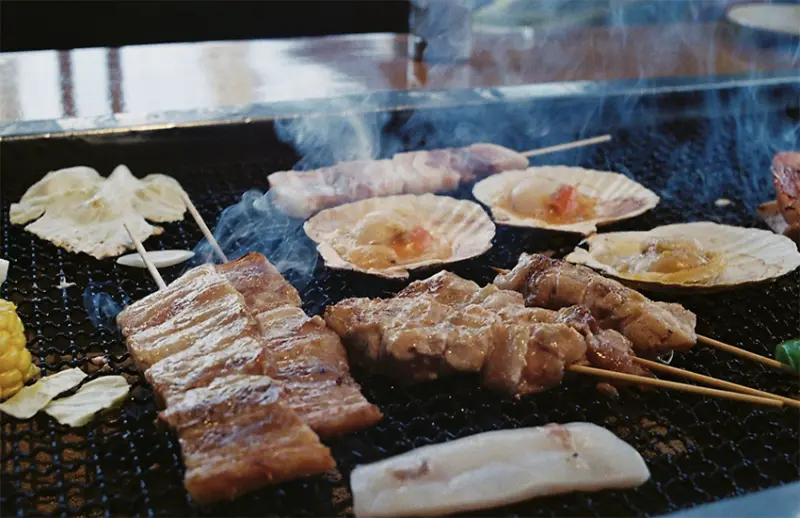 當肉的油脂滴落在炭火上滋滋作響只需將之兩面翻烤,鮮美的肉汁即封鎖住,伴隨著店員的吆喝聲,空氣中充滿了令人垂筵的美味,放入口中只能用幸福兩字形容;老闆不但嚴選食材,令來客念念不忘的還有獨門的佐料,讓食材增添風味是店家一絕,當然熟客們人手一碗的雞湯,都是客人一來再來的主因。燒友們~要吃好吃的燒肉;要喝好喝的啤酒、清酒,來這就對了。