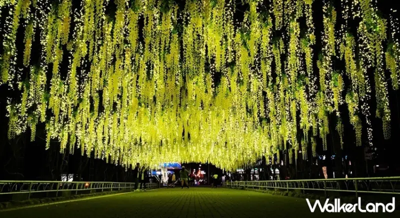 除了主燈冰晶城堡,另打造超過10組的金色主題燈飾,如營造出神秘、浪漫場景的金黃色「魔幻樹林」、公園湖畔滿覆閃亮鈴鐺球的「冬湖心願」、用籐花搭配流動燈飾打造光之庭園的「天空花園」、置入美女與野獸童話故事的「夢幻世界」等等,置身每一個場景都讓人直呼太夢幻了。
