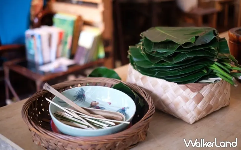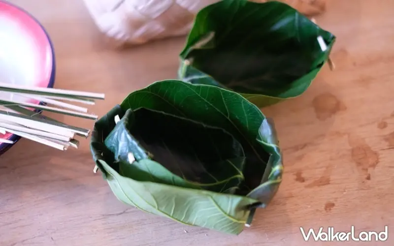 除了引領遊客展開坪林故事之旅,採集人共作室也不定期推出各種親近大自然的DIY課程活動,像是戶外採集體驗、植物拓印、植物蠟染或是自製燈籠,都是就地取材的成果。如這次登場的「植物獵人的餐桌」,僅利用樹葉、樹枝就做出樹葉容器,一秒立即化身成超環保實用小物,讓人又驚又喜,也增添在地旅行體驗的樂趣。