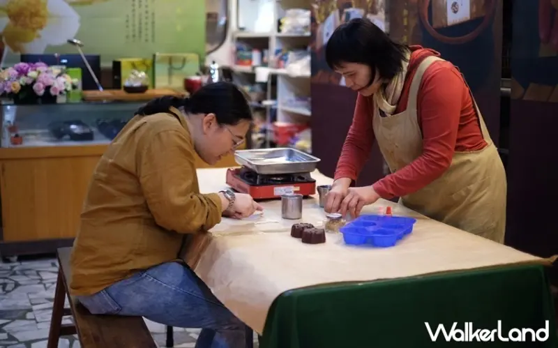 除了提供手工製皂,為了讓遊客也能從旅行中體驗在地文化,店內特別推出製皂DIY體驗,以最基礎的隔水加熱法進行,並提供各式各樣的模型讓大朋友小朋友依個人喜好作挑選。DIY製皂分為4個步驟,先將由椰子油、棕櫚油製成的皂基切碎,隔水加熱後加入茶籽粉,最後再倒入模型冷卻。茶皂DIY每人160元、精油皂DIY每人250元,需事先預約。