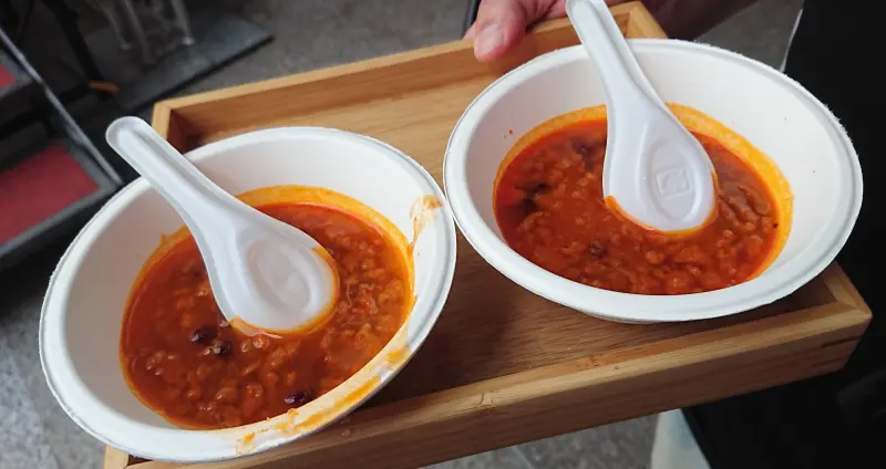 當工作人員端上太空食物濃縮包,宥勝先解釋這個要先用熱水沖泡,而且水的比例很重要,「如果水太少,像紅豆、大豆這種比較大顆的會泡不開,甚至還會吃到結塊。」所幸粉絲吃了之後都給予正面的回應,紛紛表示:「很像是義大利麵的醬料,只是把麵換成糓類。」