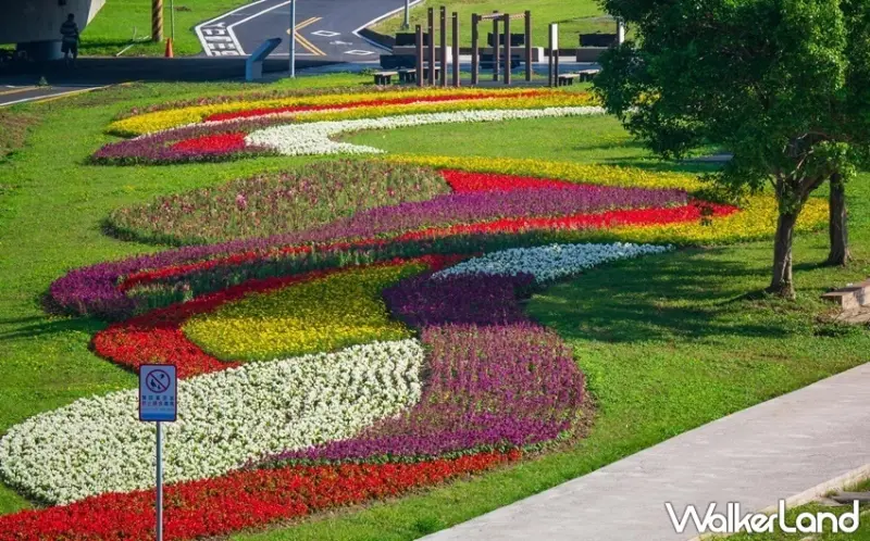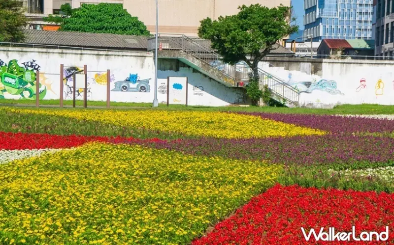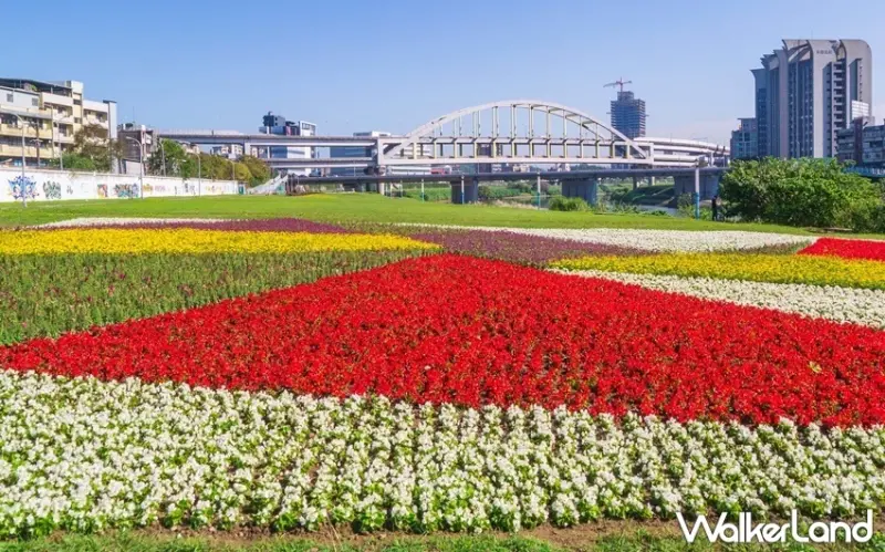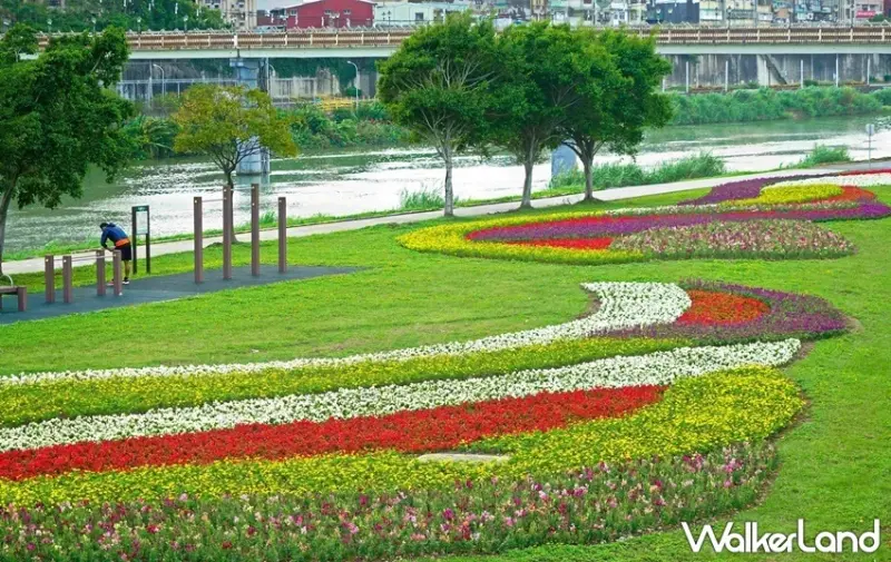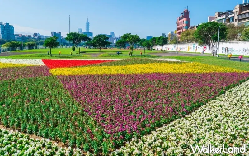台北市河濱公園沿岸,因設置步道、綠意造景,使其成為運動散步的休閒好去處。今年,台北市水利處首次於成美右岸河濱種植2區花海,分別以幾何水鳥造型圖案、曲線區塊營造出大面積繽紛色澤的花海,搭配101、橋岸風光,成為冬季裡的耀眼景色。![]()