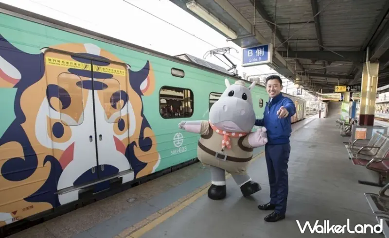 新竹市政府與台鐵攜手跨界合作,以新竹市立動物園的動物明星為主題,推出台鐵「六家線」動物彩繪列車,超人氣動物明星河馬樂樂與山羌、老虎、台灣獼猴分別擔任四節車廂主角,代表著新竹市立動物園裡的四大動物區,搭配馬卡龍底色,使整輛列車散發青春活力,讓人迫不及待搶搭這班超可愛的列車。![]()