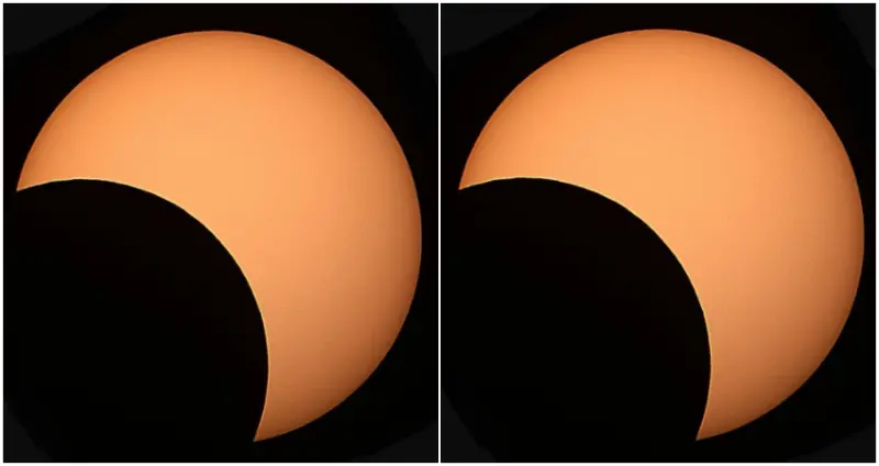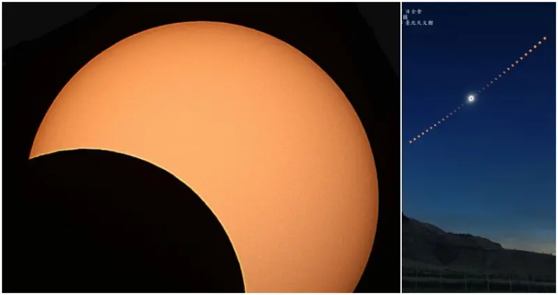 看得見,而台灣位在偏食帶上,全台皆可見日偏食的天文奇景,且各地所見太陽的遮蔽面積都在30%以上,介於32%~39%之間,又以屏東可見的遮蔽面積最大。全台「初虧」現象將從12點38分開始,下午2點14分左右達到「食甚」,下午3點半左右陸續「復圓」,全程歷時約3個小時。![]()