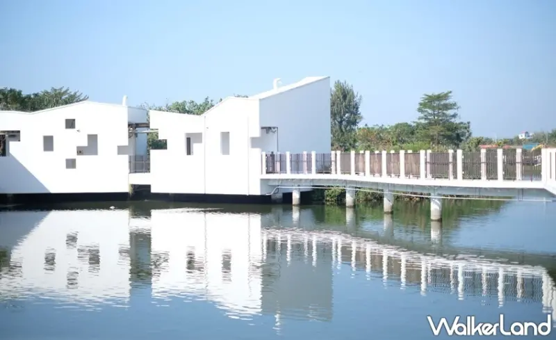 以生態保育為前提的台江國家公園遊客中心,是一棟建造在水上的綠建築,園區水道與外界相連,因而保有生物自然生長的空間。整座建築以鹽山為設計概念、並大量使用在地蚵殼作為裝飾,極具特色。走入其中,白色建築與藍天、水道交織出動人景色,使其獲得最美遊客中心的美名。