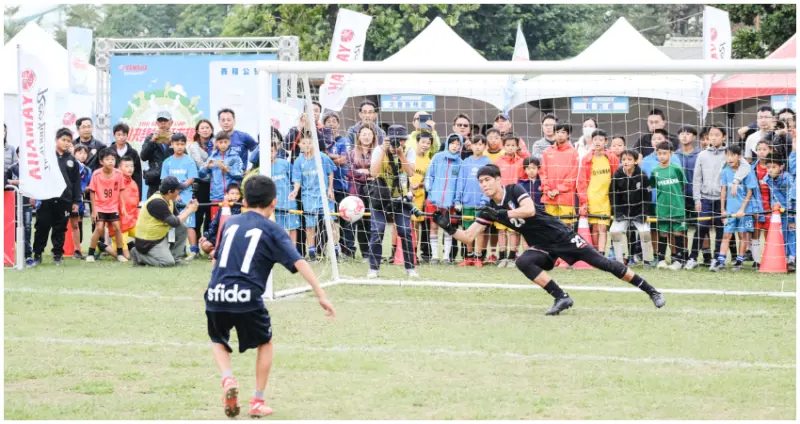 YAMAHA CUP學長,U15中華代表隊選手許博傑傳授射門訣竅,小選手們起腳射門突破國家級門將蔡碩哲封鎖