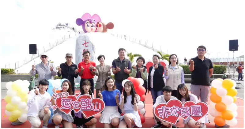 迎接充滿愛情氛圍的2020年,七股鹽山再創巨型藝術紀錄,打造「愛在鹽山 非你莫屬」全台最大Q版情侶裝置藝術啾咪放閃,於日前熱情亮相!
