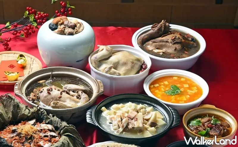 此外,台北六福萬怡酒店推出6人份的「迎春開運年菜組」7,999元,包含超霸氣開胃拼盤、乾隆花膠佛跳牆、馬告肉醬燒明蝦、老魯玫瑰悶油雞、班蘭葉燻金鯧魚、燕窩蛋餃糯米糕、野菇干貝蘿蔔糕等7道料理,皆能展現主廚的創意及經典手藝。![]()