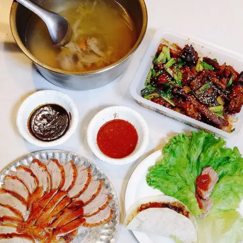 主廚王書年融合中西料理手法全新推出「爐烤鴨胸披薩」、「八珍飄香干辣鴨」、「五行堅果鴨鬆」、「當歸鴨骨湯」等多道烤鴨料理。