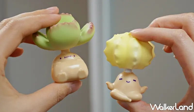 全新的「肉肉星人」系列共有6款造型,而蛋殼也是扭蛋的一部分,能夠自由切換成「盆栽型態」或是取出來的「星人形態」,其中淡紫色的「石蓮花」擁有超優雅的外型,而下方的肉肉星人則在悠閒的喝茶。另一款「桃之卵」將淡粉色的型態完美呈現,打開一看可以發現肉肉星人正微笑的看著你,療癒滿點。