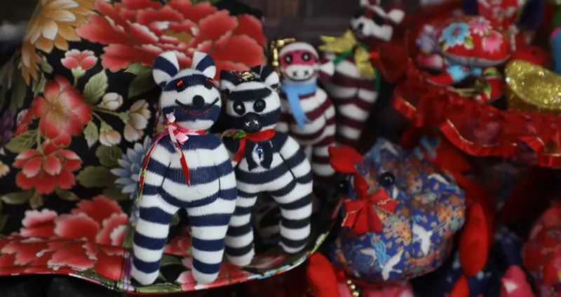 手藝精湛的還有德安堂中藥房第三代接班人賴淑真,店裡除了各類養生藥材,最大看頭就是琳琅滿目的拼布作品。竹編謝籃是創辦人拿手絕活,身為孫媳婦的賴淑真以此為題,利用拼布做成花布謝籃,迷你勾錐令人愛不釋手,其他還有福龜、包包、抱枕以及精緻的噶瑪蘭族服飾,讓慢工細活的女藝,也充滿了文化底蘊。