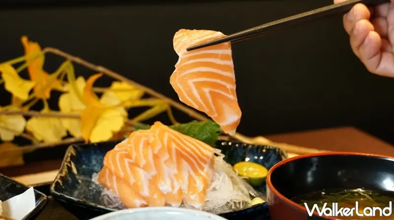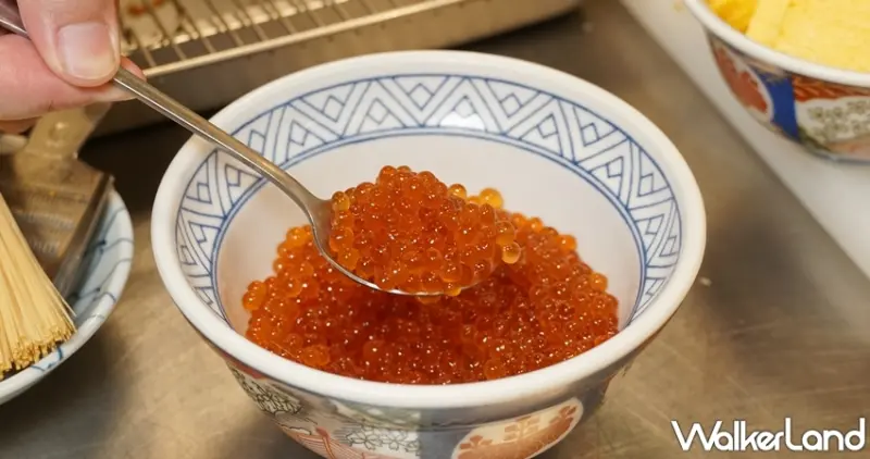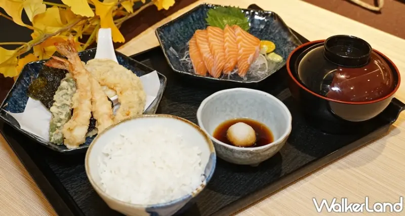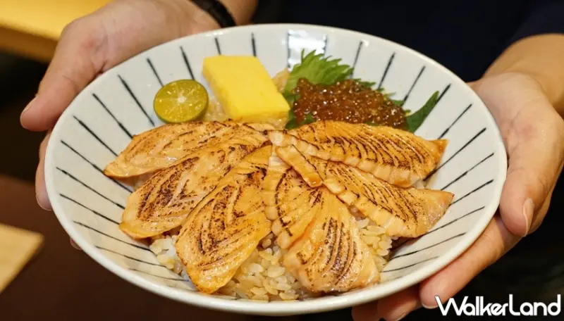而這次「金子半之助」也首度推出2款生魚片套餐,其中「天婦羅與生魚片定食」除了白飯、味噌湯,還可以一次吃到5片厚切鮭魚生魚片和頂級天婦羅拼盤,堪稱是最豐富的天婦羅組合定食。熱愛炙燒生魚片則可以選擇「炙燒鮭魚丼」,也是唯一一道不含天婦羅的餐點,將6片鮭魚生魚片刷上獨門醬汁厚炙燒,再搭配大份量魚卵一起享用,微微的焦香保證讓人一吃就上癮。