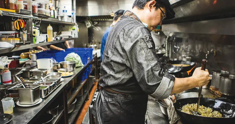 看著餐廳牆上的老照片,聽著陳莉莉回憶著哥哥小時候的故事,「哥哥從很小時他的味覺就比一般人靈敏,大概是天份使然,1、2歲就拿著鍋鏟跟著阿公進進出出廚房的。」陳博璿對料理的執著或許源自於此,自他回到金蓬萊掌廚後,便將之前在外商的現代化管理經驗帶進廚房,將廚房工序步驟SOP化,例如排骨酥的前置處理,使用的豬腹脇排需先修整多餘骨頭與肥肉到大約8公分左右等作法,如此便能確保每個顧客可享受到一致的美味與品質。