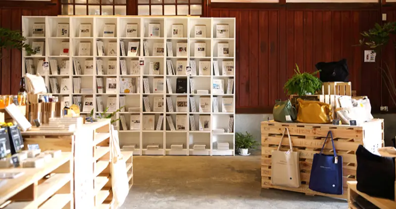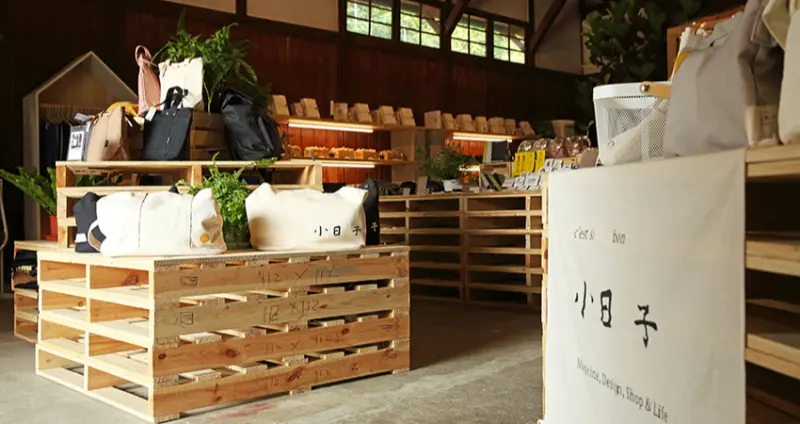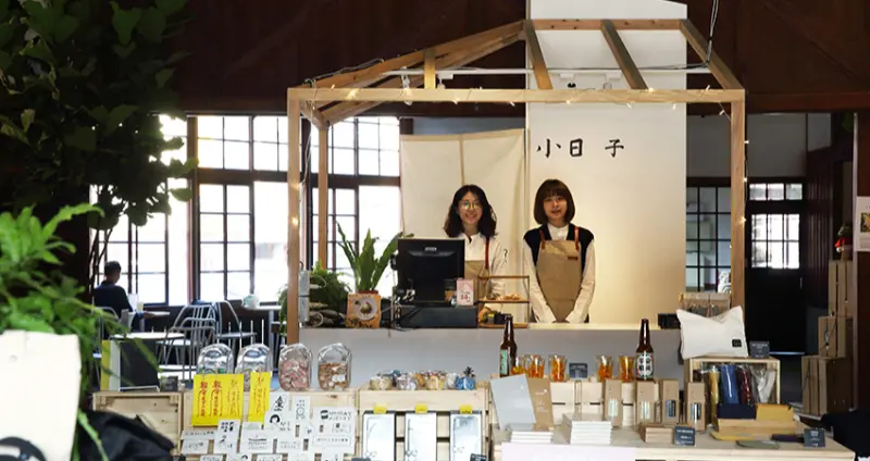 其實,小日子與竹山小鎮的淵源已久,不只是《小日子》雜誌多次介紹小鎮故事,旗下生活選物商號也曾與在地「元泰竹藝社」合作,不知不覺埋下在竹山成立第七間店鋪的契機。步入竹山菸草站,首先被挑高超過 4 米的樑柱結構所吸引,獨屬木造空間的細緻與沈靜氛圍,立刻就被感受到了。偌大的建築裡,被規劃為數個遊走區域,裡頭集合了小日子商号、小日子美好飲、菸草文物室,另有一座可愛白色小屋的辦公室、一個正籌備為香氛體驗空間的獨立小室。