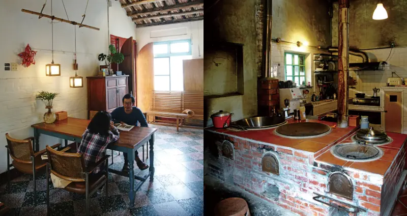 走進廚房煮咖啡,紅磚砌成的灶腳、老式花磚流理台,鍾士為都盡可能保留下來,客廳的櫥櫃和等候椅,也都是老家原有的家具。鍾士為指著身旁的等候椅說:「小時候,阿嬤都會坐在這裡抱著我。」而阿嬤房間的紅眠床、衣櫥斗櫃、木製衣架,同樣找來木工師傅修繕恢復,那座梳妝鏡還是曾祖母留下的嫁妝!「家具是老屋的靈魂,尤其這些家具本來就在這裡,我只是把它們留下來而已。」