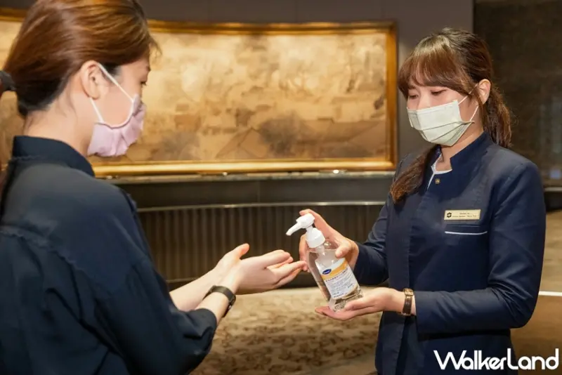 全酒店定點擺放感應式酒精消毒機供賓客使用,於酒店出入口裝設紅外線溫度測量儀及額溫測量處,為賓客、廠商及全體員工測量體溫。電梯、樓梯及全館場域、傢具皆以專業消毒藥劑執行定時消毒,所有餐廳及宴會廳廚房與備餐區、洗手間、空調系統定時啟動紫外線消毒殺菌燈。全體員工及廠商人員進出酒店皆配戴口罩並消毒手部。