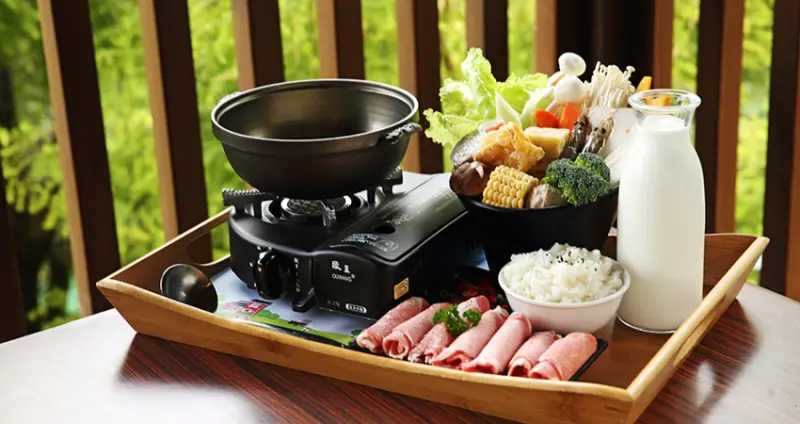 來到牧場,自然不可錯過品嚐產地滋味,位在制高點亮眼的一棟黃色木屋建築,正是為遊客所設計的景觀餐廳。若是坐在2樓半戶外席,可遠眺開闊的嘉義郊野風景,而春夏時節更有黃花風鈴木陪襯,在此可以品嚐滋味香醇的鮮奶火鍋,以及用鮮奶冰磚製作的鮮奶雪花冰,倘若覺得意猶未盡,還能再到鮮奶吧,買份農場自製的優格,把健康好滋味帶著走!