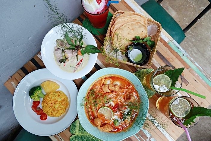 【桃園龍崗|阿含thai】忠貞市場附近,文青風網美泰式料理,綠咖哩雞腿飯/泰式炒河粉/泰式炸雞翅/泰奶/香蕉煎餅/摸摸渣渣(附菜單)
