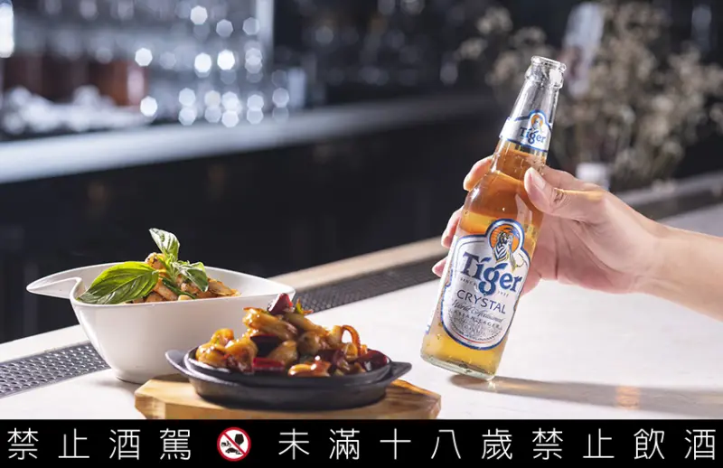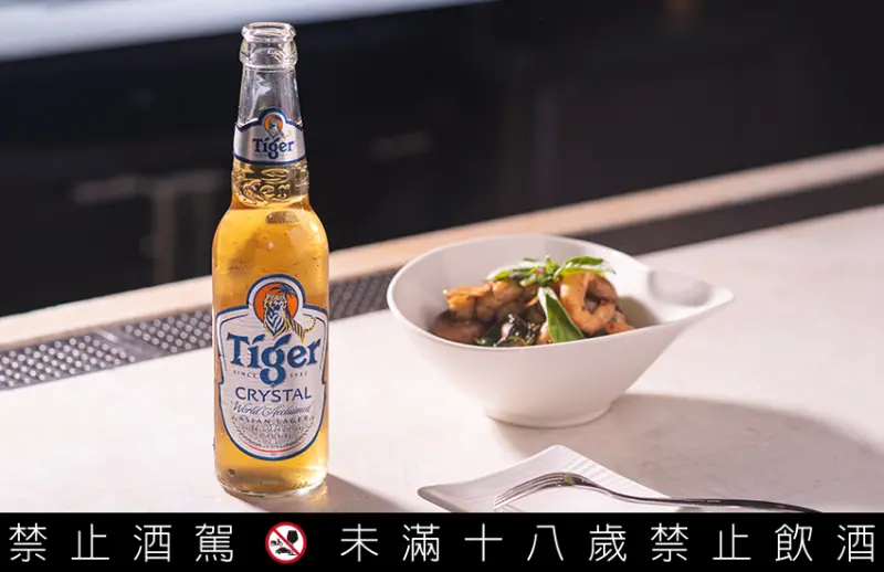 以新鮮白蝦及蘑菇,搭配蒜仁爆香大火拌炒後,加入羅勒葉提味,一入口便讓鮮蝦與蘑菇的氣味更加凸顯。此時來上一口由獨家冰釀過濾技術釀造的虎牌冰釀啤酒,感受前所未見的清爽順口,以及微微蜂蜜甜味的啤酒口感,不會搶了料理的風采,反倒點綴出鮮蝦與蘑菇的鮮美與多汁。![]()