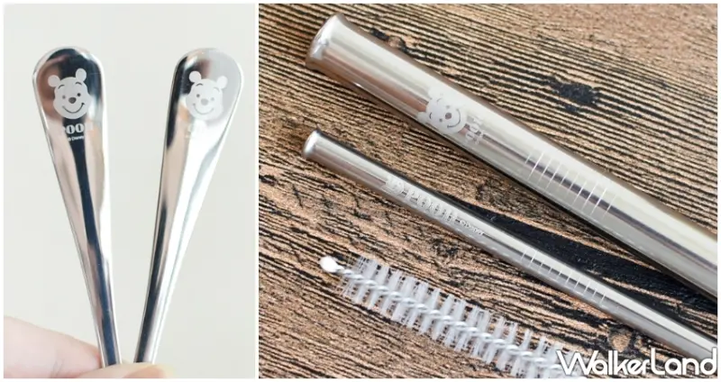 內容物的部分則分為「不鏽鋼餐具組、不鏽鋼吸管組」兩種,其中304不鏽鋼餐具組搭配叉子、湯匙以及筷子,並都有超萌的維尼大臉造型雷射,不管是吃便當、吃義大利麵都適合,而選擇304不鏽鋼吸管組則會附上粗、細吸管各一支,同樣看得見可愛的維尼大臉造型,搭配一支清潔刷方便使用。